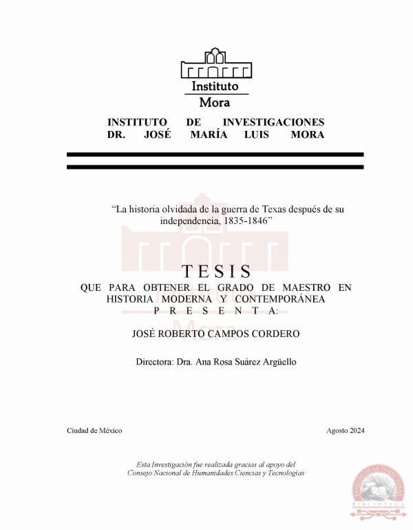 2024 Tesis. Maestría. Instituto de Investigaciones Dr. José María Luis Mora, Maestría en Historia Moderna y Contemporánea