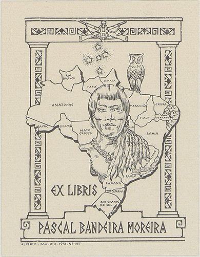 [Ex libris de Pascal Bandeira Moreira]/ Propietario Pascal Bandeira Moreira ; diseñador Alberto Lima