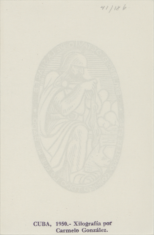 ImagenIdioma: Español Series Colección de Ex libris de José Ignacio Conde y Díaz Rubín ; caja 1 / guardaProductor: Cuba, 1950Descripción: 1 estampa; xilografía; 14.5 x 9.5 cmTipo de contenido: - imagen fija