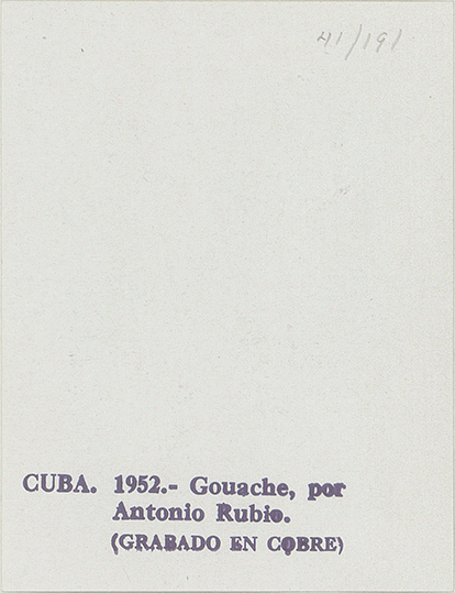 PictureLanguage: Spanish Series: Colección de Ex libris de José Ignacio Conde y Díaz Rubín ; caja 1 / guardaProducer: Cuba, 1952Description: 1 estampa; grabado en cobre; 5.35 x 4.11 cmContent type: - imagen fija