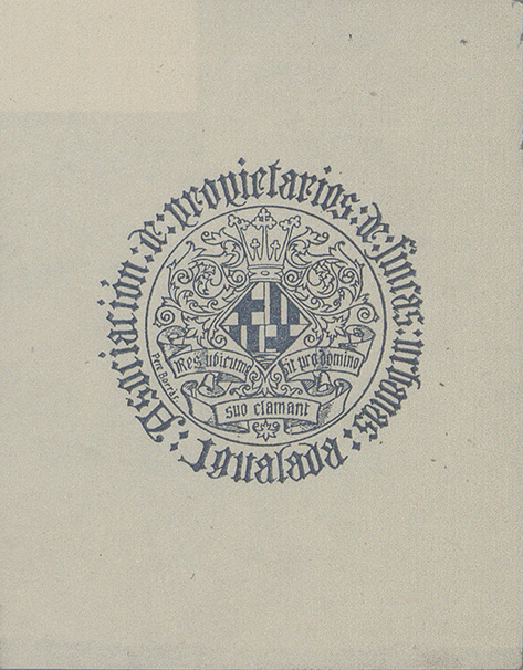 Inscripción alrededor del escudo: "Asociación de Propietarios de Fincas Urbanas. Igualada"
