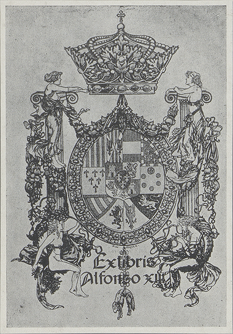 Inscripción en el borde inferior: "Ex-libris / Alfonso XIII"