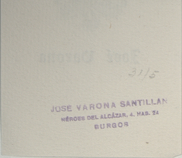 Título asignado por el personal de la biblioteca. Tinta de estampación en color azul. Escudo de tipo francés, partido, con bordura, timbrado por un yelmo, con lambrequines. En el verso, sello estampado con la dirección del titular. Información tomada de la Biblioteca Nacional de España: https://datos.bne.es/edicion/a7250631.html