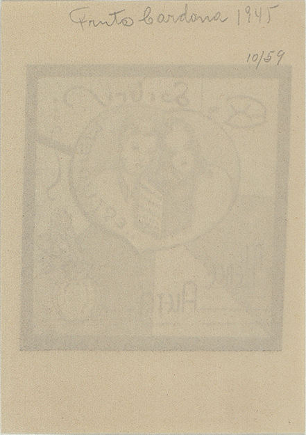 PictureSeries: Colección de Ex libris de José Ignacio Conde y Díaz Rubín ; caja 2 / guardaProducer: [Zaragoza, España], 1945Description: 1 estampa ; 9.8 x 7.4 cmContent type: - imagen fija