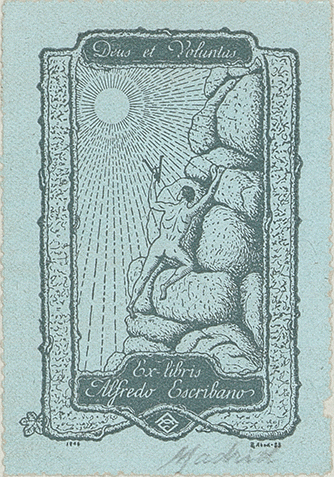 Inscripción dentro de la composición: "Ex-libris Alfredo Escribano"