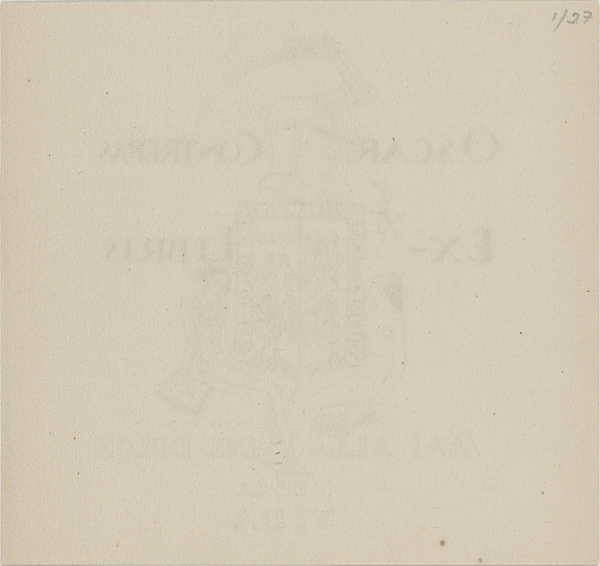 PictureSeries: Colección de Ex libris de José Ignacio Conde y Díaz Rubín ; caja 3 / guardaProducer: [Lugar sin identificar], [entre 1919 y 1926]Description: 1 estampa; reproducción fotomecánica; 10.7 x 11.3 cmContent type: - imagen fija