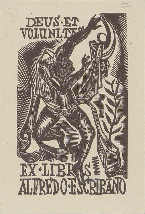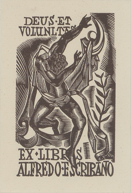 Inscripción dentro de la composición: "EX LIBRIS ALFREDO ESCRIBANO"