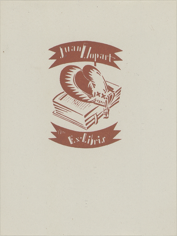 [Ex libris de Juan Llopart]/ Propietario Juan Llopart ; diseñador I. Vidal
