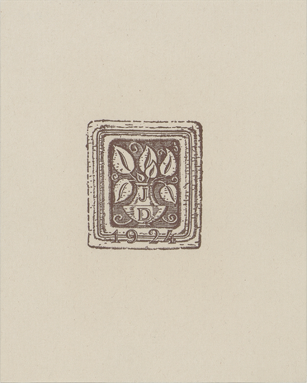 [Ex libris de J.D.]/ Propietario J.D. ; diseñador I. Vidal