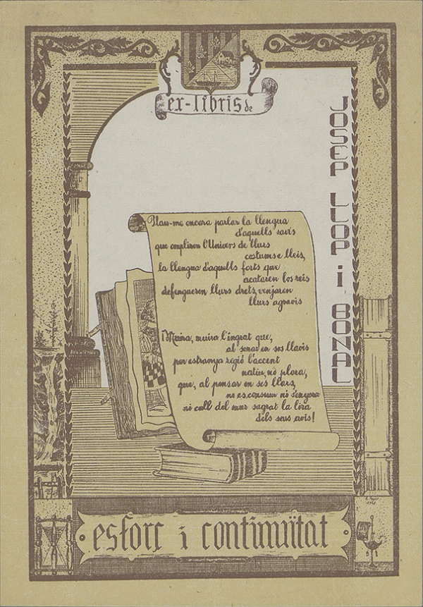 [Ex libris de Josep Llop i Bonal]/ propietario Josep Llop i Bonal ; diseñador E. Pagés