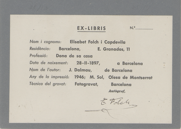[Ex libris de Elisabet Folchl]/ propietaria Elisabet Folch ; diseñador J. Dalmau
