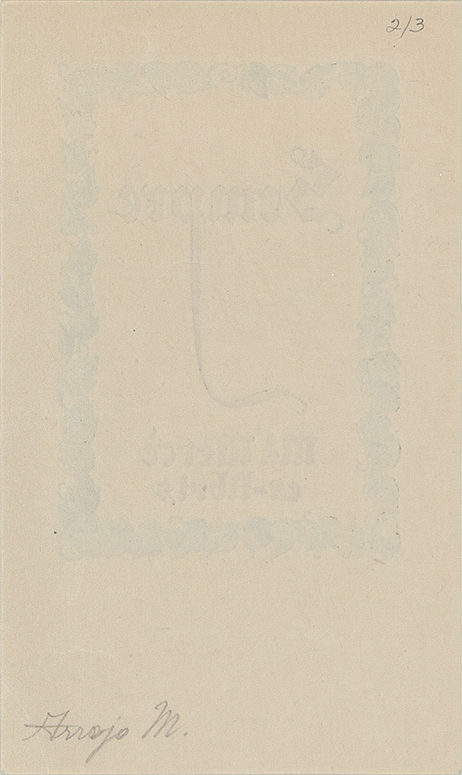 Inscripción dentro de la estampación, en tinta roja: "SEMPRE / Mª Mercè / ex-libris"