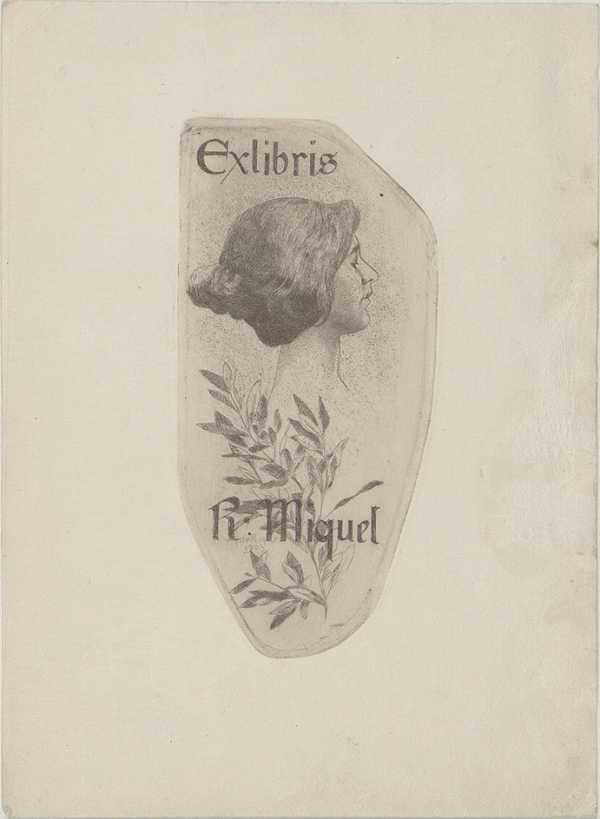 [Ex libris de R. Miquel]/ Propietario R. Miquel ; diseñador A. de Riquer