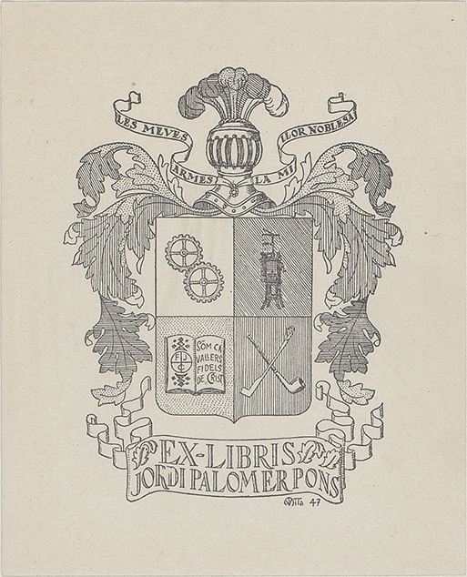 [Ex libris de Jordi Palomer Pons]/ Propietario Jordi Palomer Pons ; diseñador M.V. [monograma]