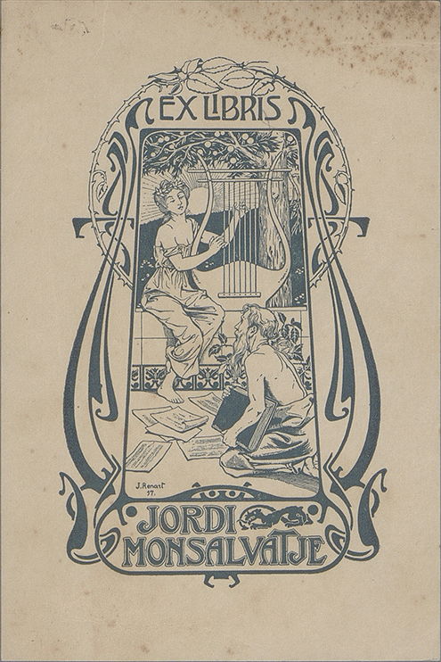 [Ex libris de Jordi Monsalvatje]/ Propietario Jordi Monsalvatje ; diseñador J. Renart