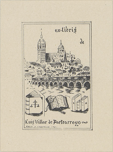 [Ex Libris de Luis Villar de Partearroyo] Propietario Luis Villar de Partearroyo ; diseñador J. Cardeñosa