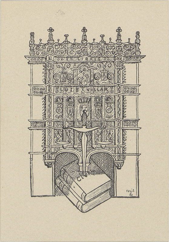 [Ex Libris de Luis Villar] Propietario Luis Villar de Partearroyo ; diseñador SC [monograma]