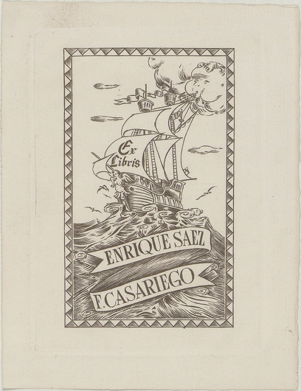 [Ex Libris de Enrique Sáez F. Casariego] Propietario Enrique Sáez Fernández-Casariego ; [diseñador Moyano]
