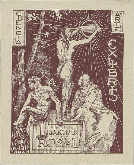 [Ex Libris de Santiago Rosal] Propietario Santiago Rosal y Camprodón ; diseñador Rossell