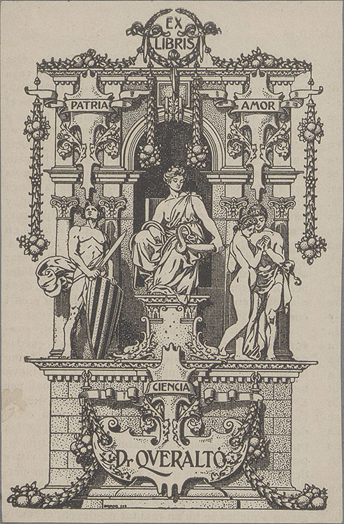 [Ex Libris de Dr. Qveraltó] Propietario Jaime Queraltó y Ros ; diseñador Triado