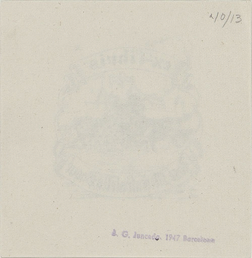 ImagenSeries Colección de Ex libris de José Ignacio Conde y Díaz Rubín ; caja 5 / guardaProductor: Barcelona, 1947Descripción: 1 estampa: xilografía; 9.3 x 7.4 cmTipo de contenido: - imagen fija