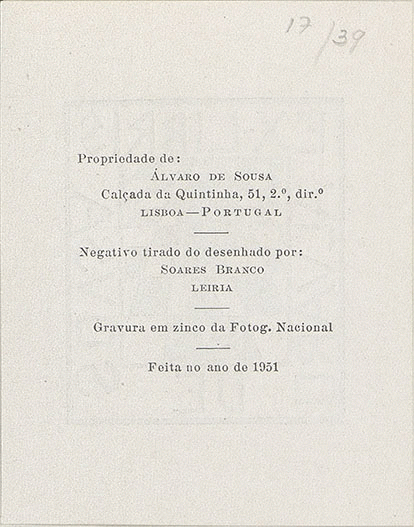 PictureSeries: Colección de Ex libris de José Ignacio Conde y Díaz Rubín ; caja 6 / guardaManufacturer: Lisboa, Portugal, 1951Description: 1 estampa: zincografía; cmContent type: - imagen fija