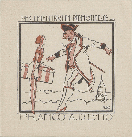 [PER I MIEI LIBRI IN PIEMONTESE. Ex libris de Franco Assetto]/ propietario Franco Assetto; diseñador Sergio Burzi