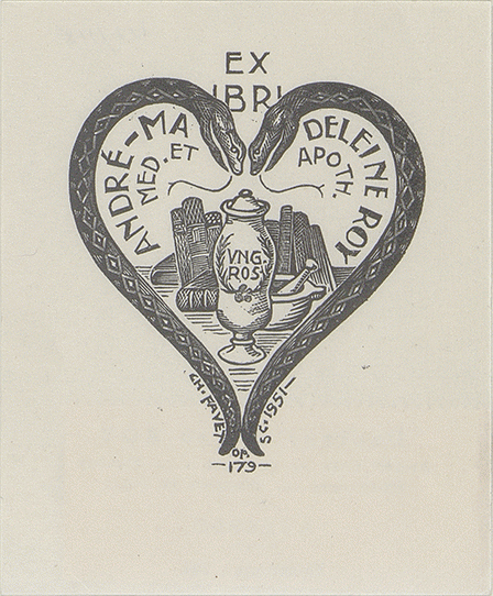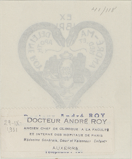 [Ex libris de André-Madeleine Roy]/ propietario André Roy; diseñador Ch. Favet