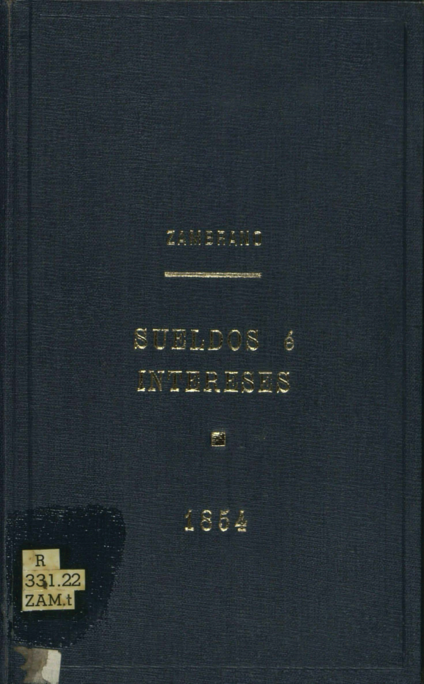 Tarifas de sueldo e intereses : obra útil a toda clase de personas, y principalmente a los empleados de Hacienda/ por Juan A. Zambrano